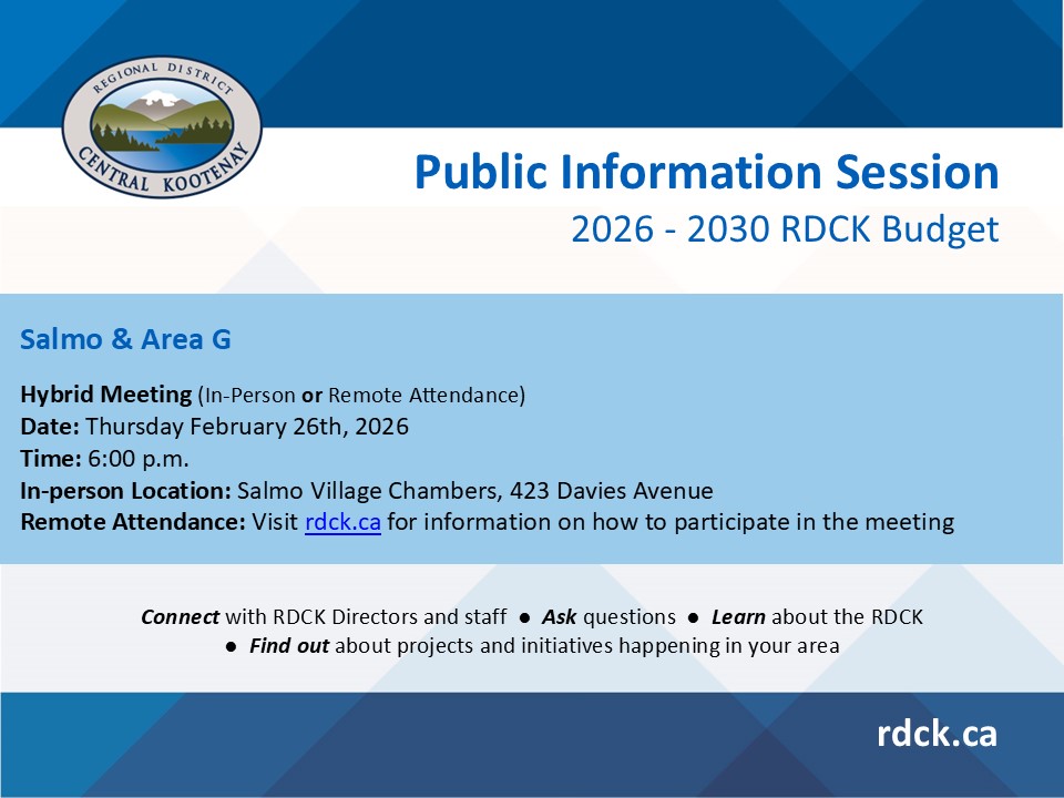 Salmo and Area G Public Information Session – RDCK Budget 2026-2030