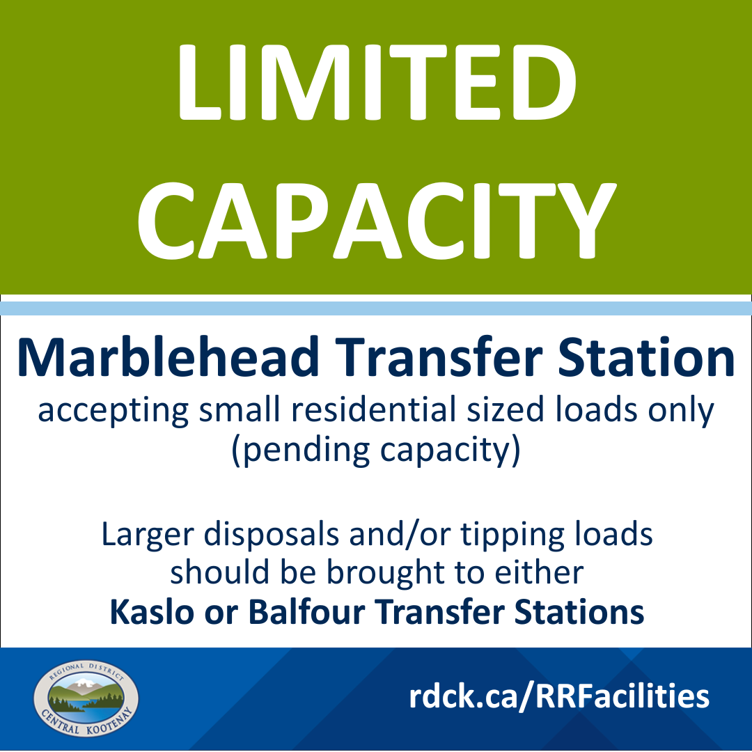 Pleased by advised that the Marblehead Transfer Station will be operating at limited capacity for Mixed Waste and is only accepting small residential sized loads.
